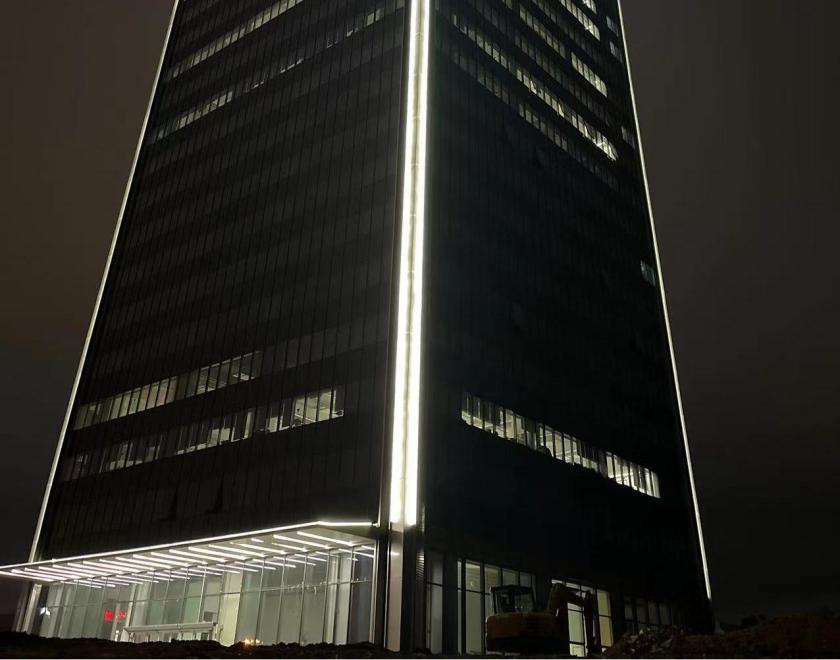 日盛照明緊密貼合“零碳智慧樓宇”定位,采用高效節(jié)能LED光源,降低能耗;通過線條燈與投光燈相結(jié)合,凸顯大樓的現(xiàn)代感與科技屬性。項目中使用到的燈具均為DC24V產(chǎn)品,使用一線品牌芯片,電源。防護等級IP67,滿足客戶高標準的防水防腐等級要求,有效延長使用壽命;合理的照明設(shè)計方案有效降低壓降,保證出光均勻,線條流暢;模組化設(shè)計便于后期維護,減少資源浪費。